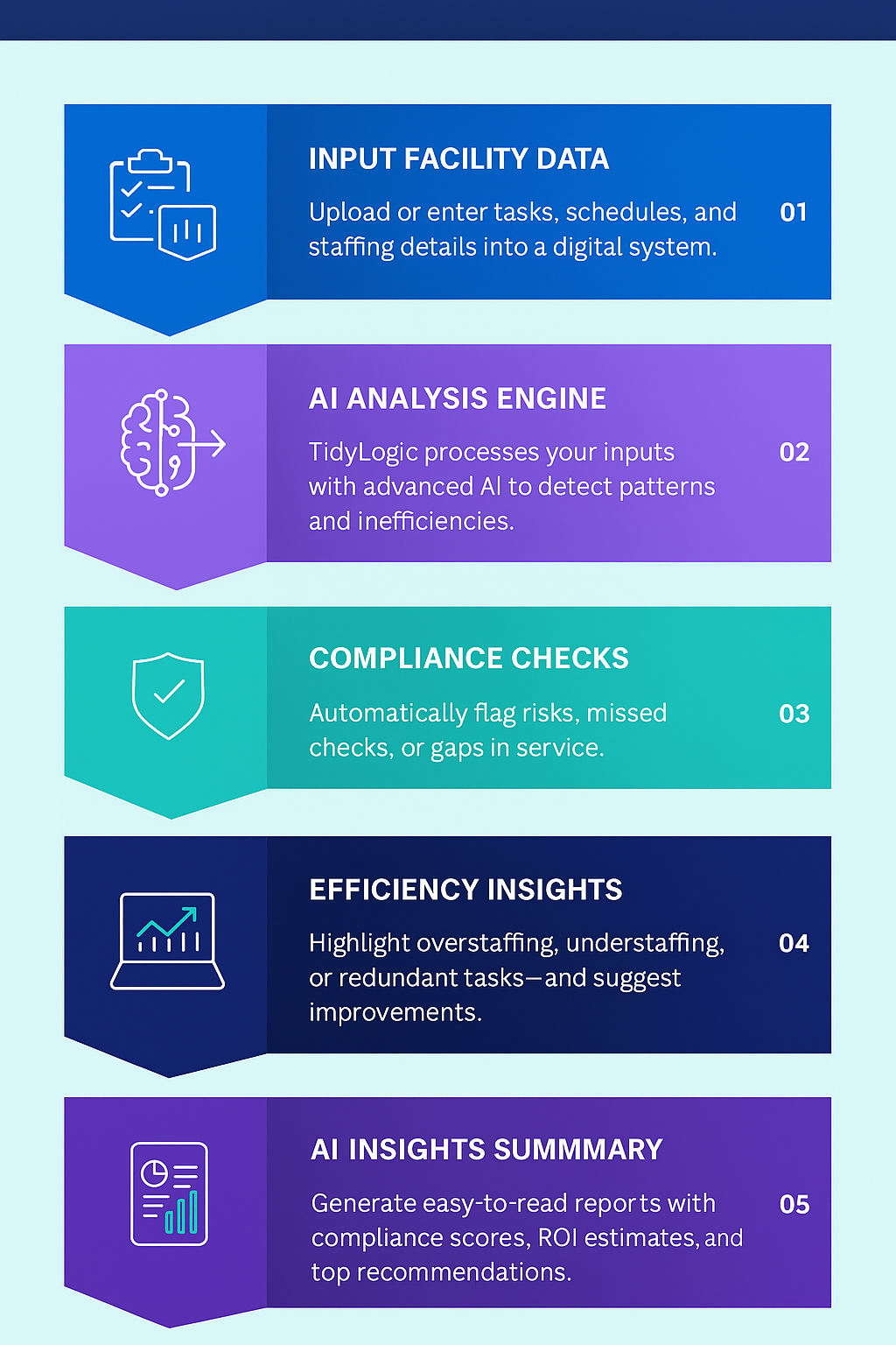 Built specifically for facility operations, TidyLogic transforms outdated paper-based schedules into intelligent digital plans — reducing inefficiencies, improving consistency, and laying the foundation for smarter, data-driven decision-making.